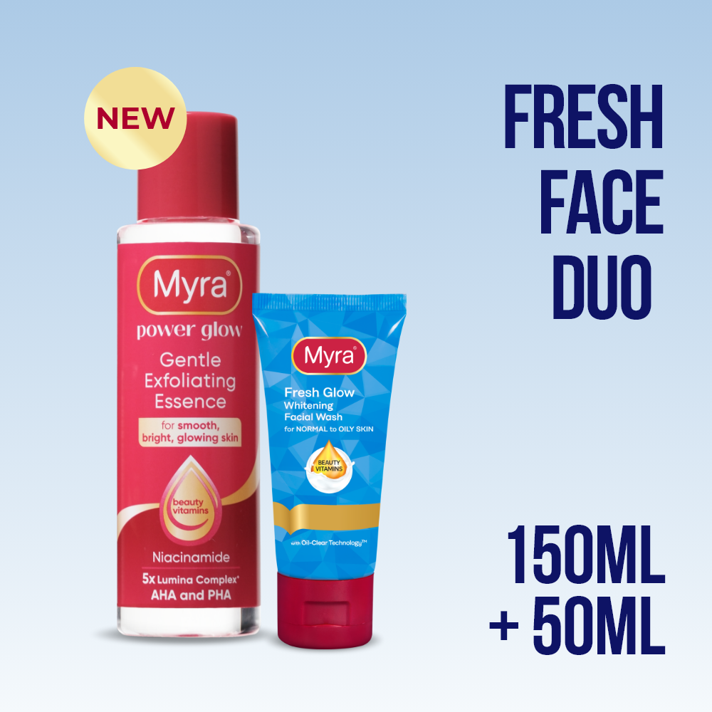 Myra Fresh Face Duo (Myra Fresh Glow Whitening Facial Wash 50ml + Myra Power Glow Essence 150ml)