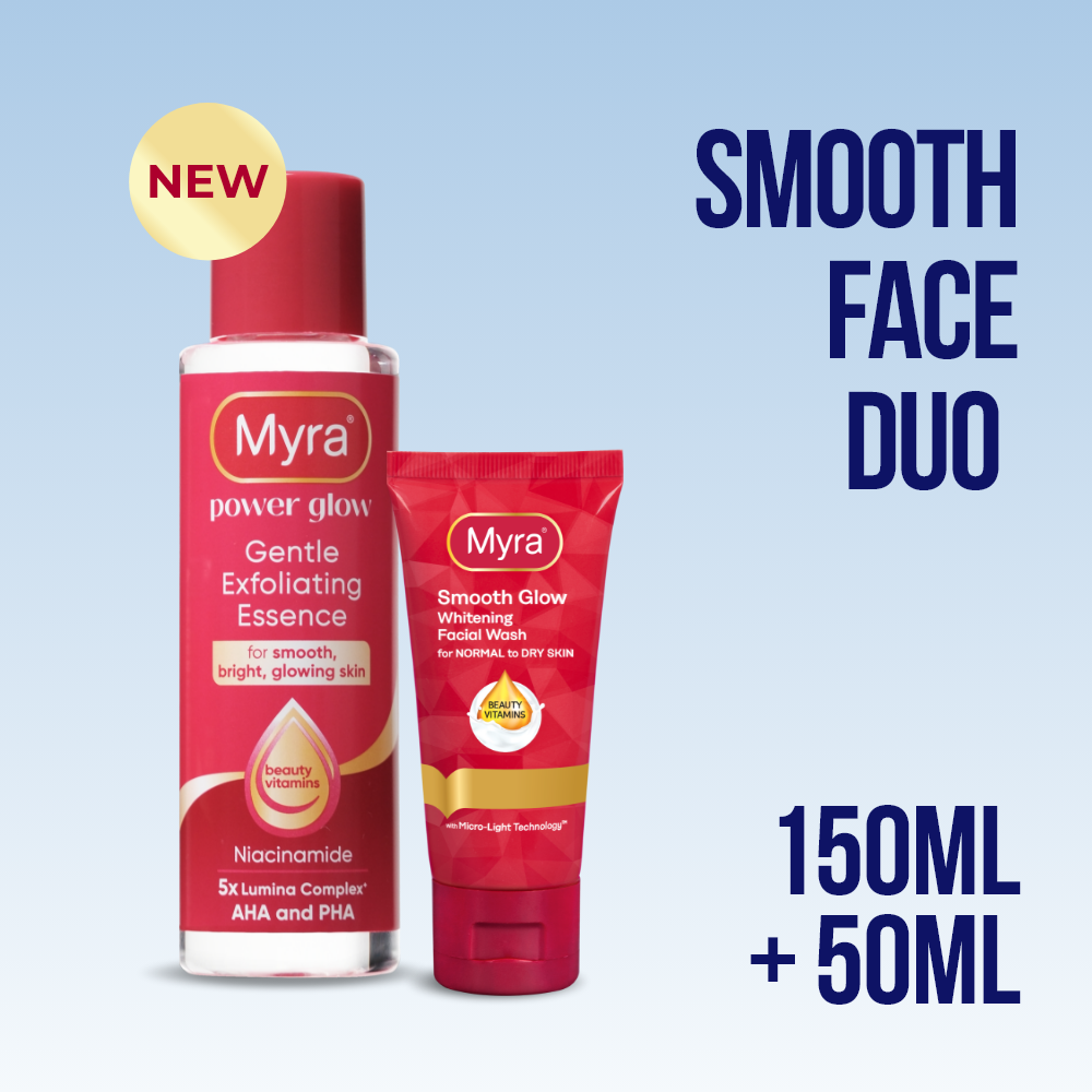 MYRA SMOOTH FACE DUO (MYRA SMOOTH GLOW WHITENING FACIAL WASH 50ML + MYRA POWER GLOW ESSENCE 150ML)