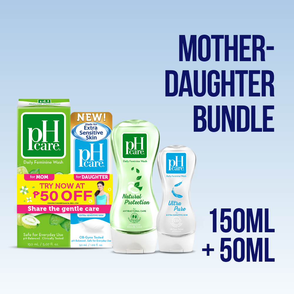 PH CARE MOTHER-DAUGHTER BUNDLE (PH CARE NATURAL PROTECTION 150ML + PH CARE ULTRA PURE DAILY FEMININE WASH 50ML)